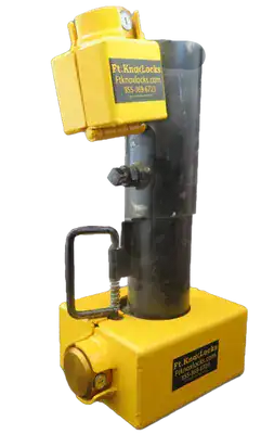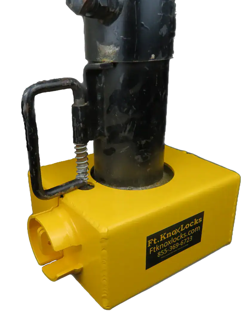 3/16 welded steel construction with a no-nonsense design with one lock enclosing the standard gooseneck coupler latch and the second lock protecting one of the set bolts of the drop tube.  Fits both round & square drop tubes.  Also included are 2 keyed alike Trimax “puck” style locks keyed alike.  These locks by design are completely bolt-cutter-proof. Time, noise, power tools or a cutting torch will be required to defeat our lock design which will eliminate most theft interest. Please call us for clarification if you have any questions. Be sure to check out our installation video HERE.  We offer discounts starting at 10 or more Ft. Knox Locks. Free Shipping is included with this package deal.
