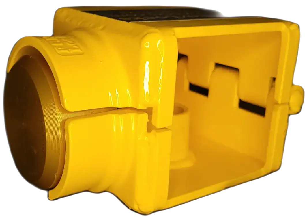3/16 welded steel construction with a no-nonsense design which fully encompasses the ball head of an UFP coupler. Accepts most all “puck” style locks (sold separately) which by design are completely bolt cutter proof. Time, noise, power tools or a cutting torch will be required to defeat our lock design which will eliminate most theft interest. Be sure to compare your coupler to the pictures here and contact us first if it does not match. We also sell a few different brands of the “puck” style locks (sold separately) with varying levels of security. DO call us for clarification if you have any questions. Be sure to check out our installation video HERE.We offer discounts starting at 10 or more Ft. Knox Locks. Bright yellow powder coat. Made in America!